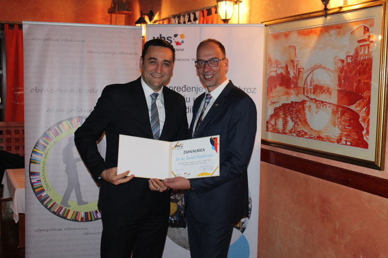 Educational authorities in Bosnia and Herzegovina have put significant efforts in regulation of the field of adult education recently whereby the ministers of education, as well as contact persons for adult education in the responsible ministries, have made a huge contribution to these processes. Therefore, DVV International - Country Office B&H organised a dinner party in Mostar where the director, Dr. Avdagić, delivered the Certificates of Appreciation for significant contribution and cooperation in developing and regulating the field of adult education in Bosnia and Herzegovina.
