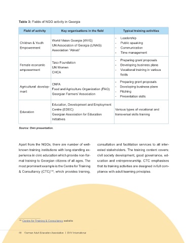 Table 3: Fields of NGO activity in Georgia